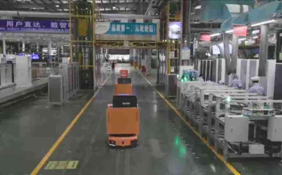 为车载冰箱物流配送打造的智能解决方案,,包含产中物流通过潜伏举升AMR搬运至线边,,,产后成品物流智能仓储,,,,流程包含产中物流智能齐套入库,,,线边安灯叫料AMR智能配送至线边,,,,成品入库、、、、出库,,,通过无人堆高车机器人,,智能仓储管理替代人工作业管理,,,,实现更高存储、、、、更高效率、、、、更具柔性化的解决方案。。。